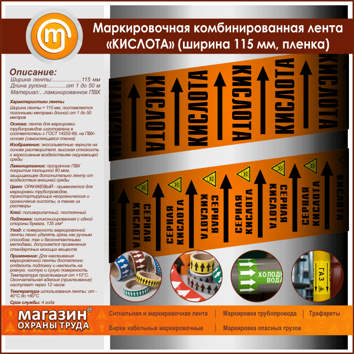 Маркировочная комбинированная лента «КИСЛОТА» (ширина 115 мм, самоклеящаяся плёнка) в Хотьково купить