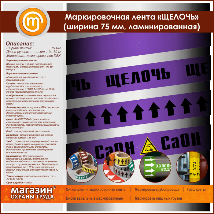 Маркировочная лента «ЩЕЛОЧЬ» (ширина 75 мм, самоклеящаяся плёнка с ламинированием) в Хотьково купить