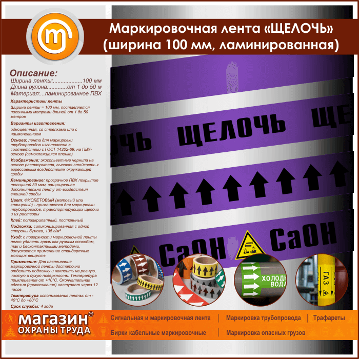Маркировочная лента «ЩЕЛОЧЬ» (ширина 100 мм, самоклеящаяся плёнка с ламинированием) в Хотьково купить