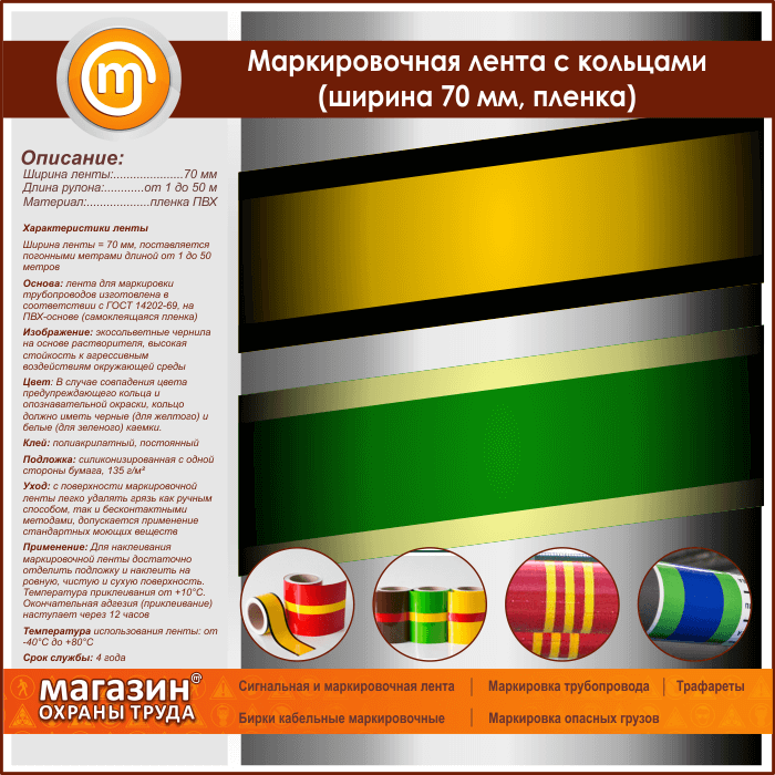 Маркировочная лента с кольцами (ширина 70 мм, самоклеящаяся плёнка) в Хотьково купить