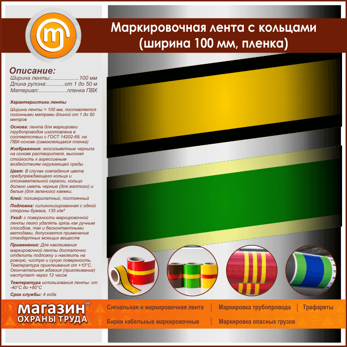 Маркировочная лента с кольцами (ширина 100 мм, самоклеящаяся плёнка) в Хотьково купить