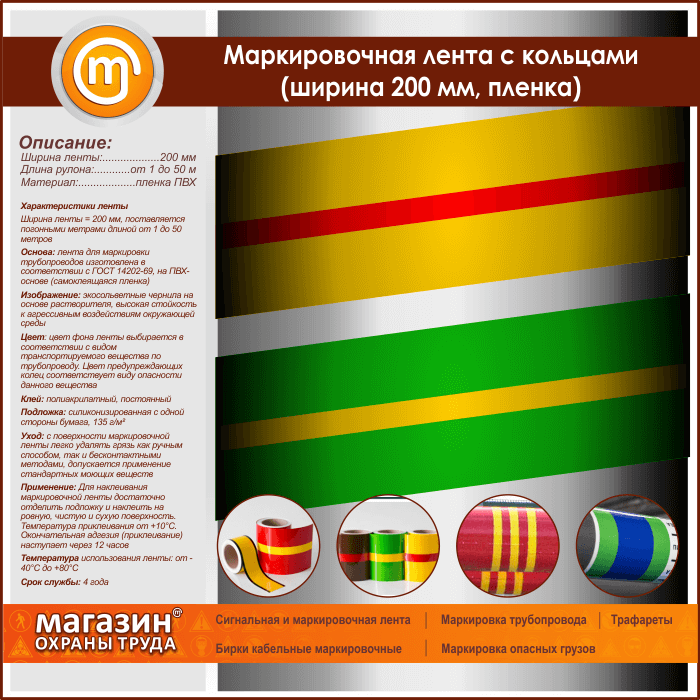 Маркировочная лента с кольцами (ширина 200 мм, самоклеящаяся плёнка) в Хотьково купить