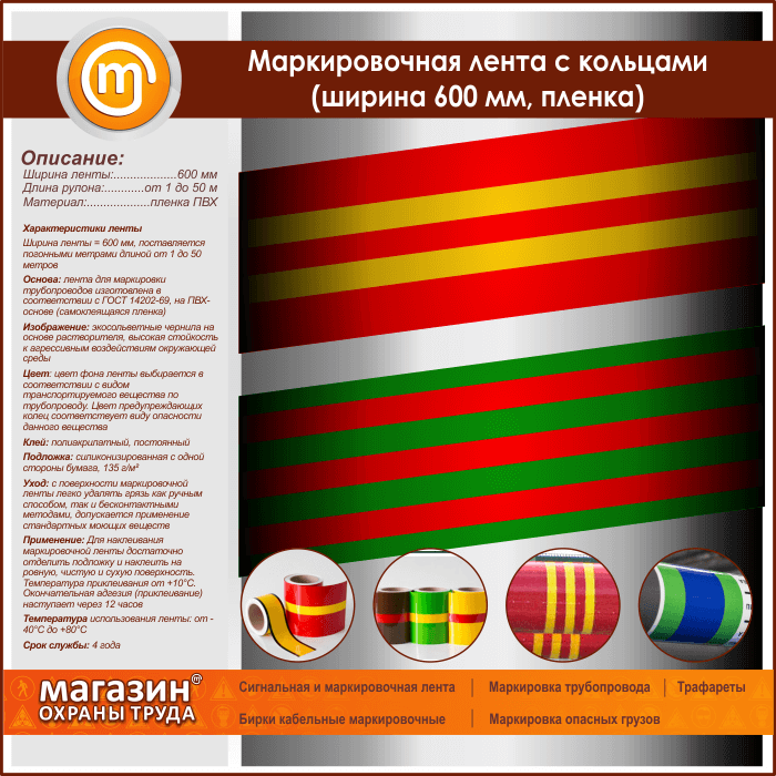Маркировочная лента с кольцами (ширина 600 мм, самоклеящаяся плёнка) в Хотьково купить