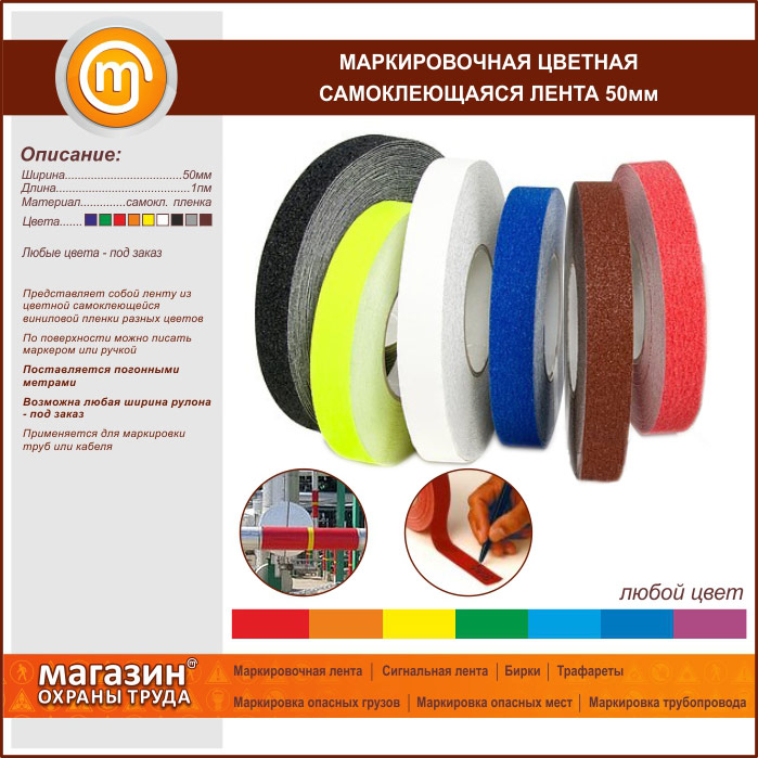 Маркировочная цветная самоклеящаяся лента, 50 мм в Хотьково купить
