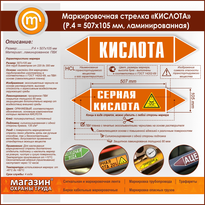 Маркировочная стрелка «КИСЛОТА» (P.4 = 507х105 мм, самоклеящаяся плёнка с ламинированием) в Хотьково купить