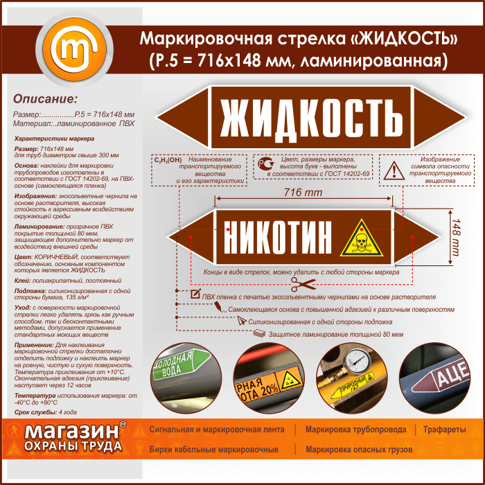 Маркировочная стрелка «ЖИДКОСТЬ» (P.5 = 716х148 мм, самоклеящаяся плёнка с ламинированием) в Хотьково купить