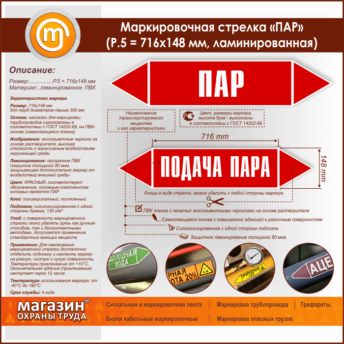 Маркировочная стрелка «ПАР» (P.5 = 716х148 мм, самоклеящаяся плёнка с ламинированием) в Хотьково купить