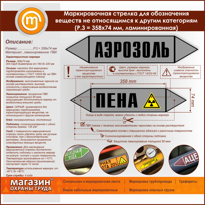 Маркировочная стрелка «ПРОЧИЕ ВЕЩЕСТВА» (P.3 = 358х74 мм, самоклеящаяся плёнка с ламинированием) в Хотьково купить