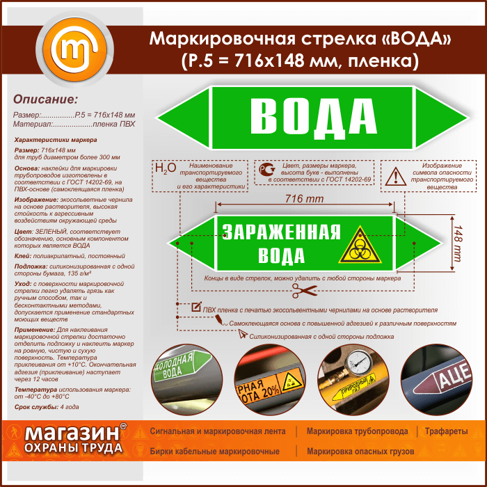 Маркировочная стрелка «ВОДА» (P.5 = 716х148 мм, самоклеящаяся плёнка) в Хотьково купить