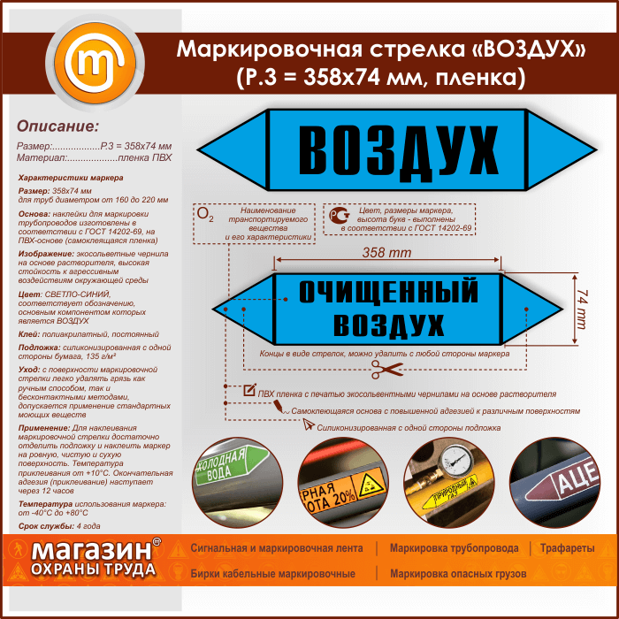 Маркировочная стрелка «ВОЗДУХ» (P.3 = 358х74 мм, самоклеящаяся плёнка) в Хотьково купить