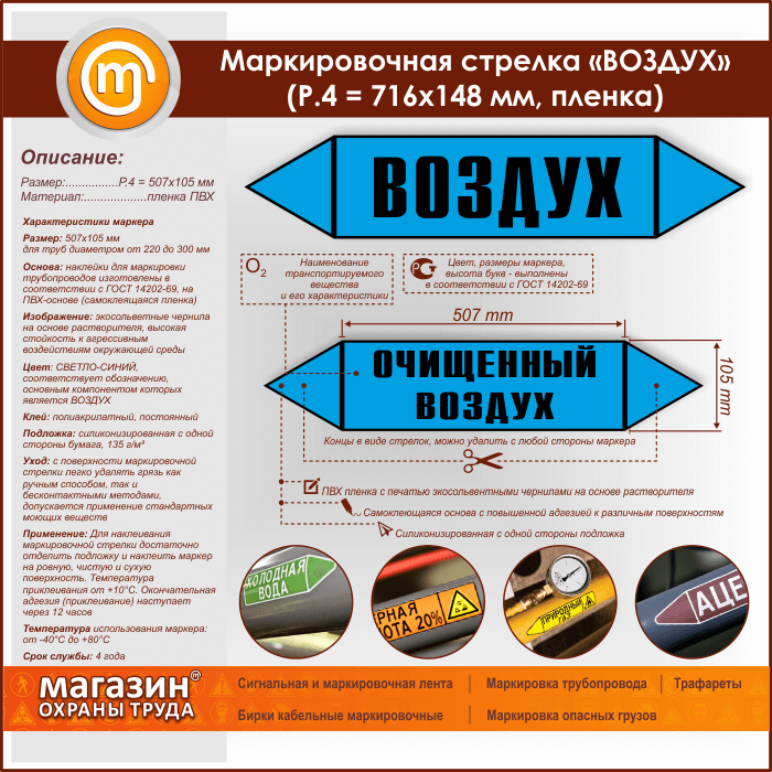 Маркировочная стрелка «ВОЗДУХ» (P.4 = 507х105 мм, самоклеящаяся плёнка) в Хотьково купить