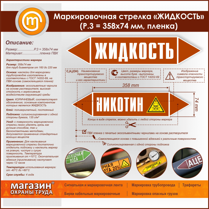 Маркировочная стрелка «ЖИДКОСТЬ» (P.3 = 358х74 мм, самоклеящаяся плёнка) в Хотьково купить