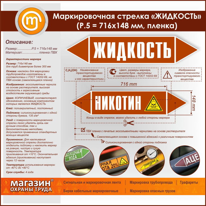Маркировочная стрелка «ЖИДКОСТЬ» (P.5 = 716х148 мм, самоклеящаяся плёнка) в Хотьково купить