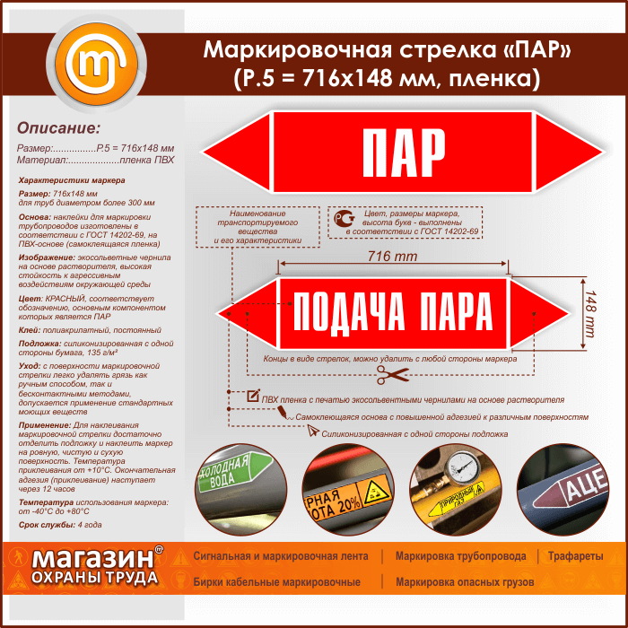Маркировочная стрелка «ПАР» (P.5 = 716х148 мм, самоклеящаяся плёнка) в Хотьково купить