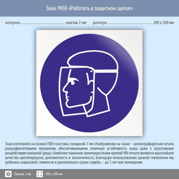 Знак M08 «Работать в защитном щитке» (пластик, 200х200 мм) в Хотьково купить