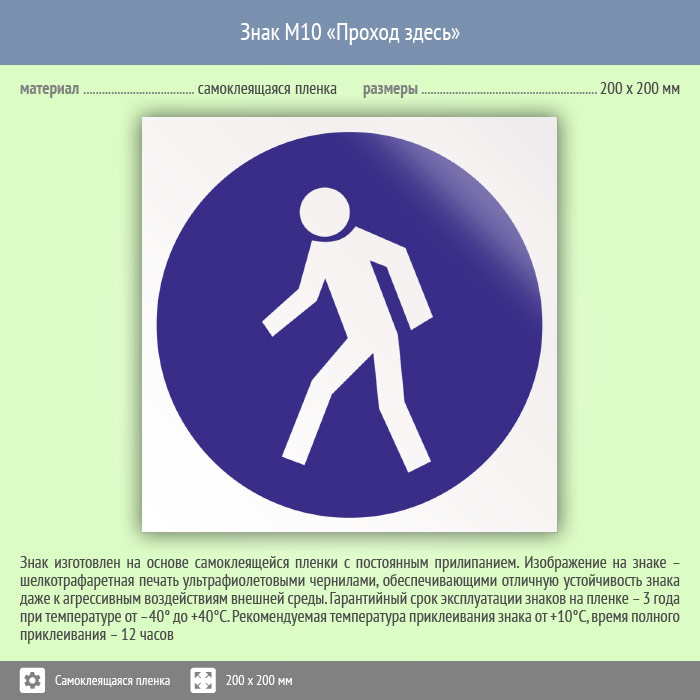 Знак M10 «Проход здесь» (пленка, 200х200 мм) в Хотьково купить