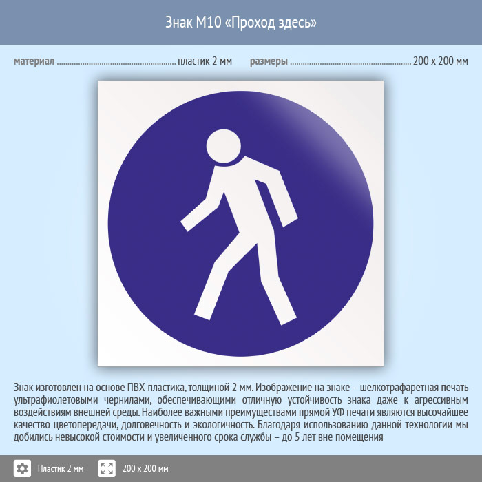 Знак M10 «Проход здесь» (пластик, 200х200 мм) в Хотьково купить