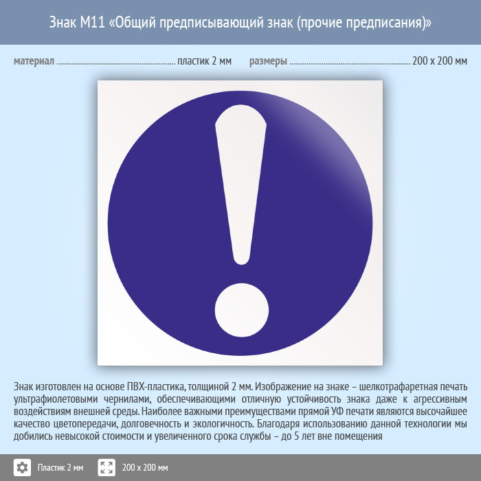 Знак M11 «Общий предписывающий знак (прочие предписания)» (пластик, 200х200 мм) в Хотьково купить