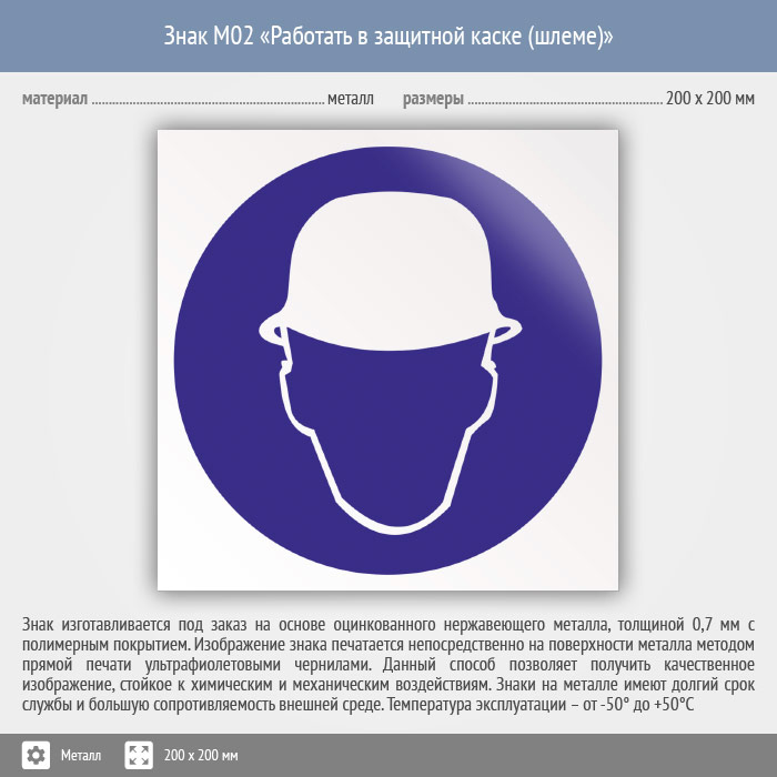Знак M02 «Работать в защитной каске (шлеме)» (металл, 200х200 мм) в Хотьково купить