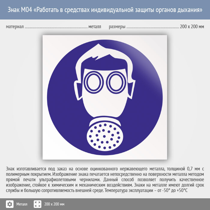 Знак M04 «Работать в средствах индивидуальной защиты органов дыхания» (металл, 200х200 мм) в Хотьково купить