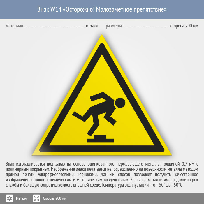 Знак W14 «Осторожно! малозаметное препятствие» (металл, сторона 200 мм) в Хотьково купить