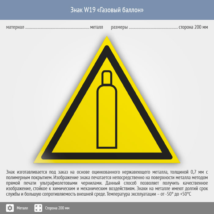 Знак W19 «Газовый баллон» (металл, сторона 200 мм) в Хотьково купить