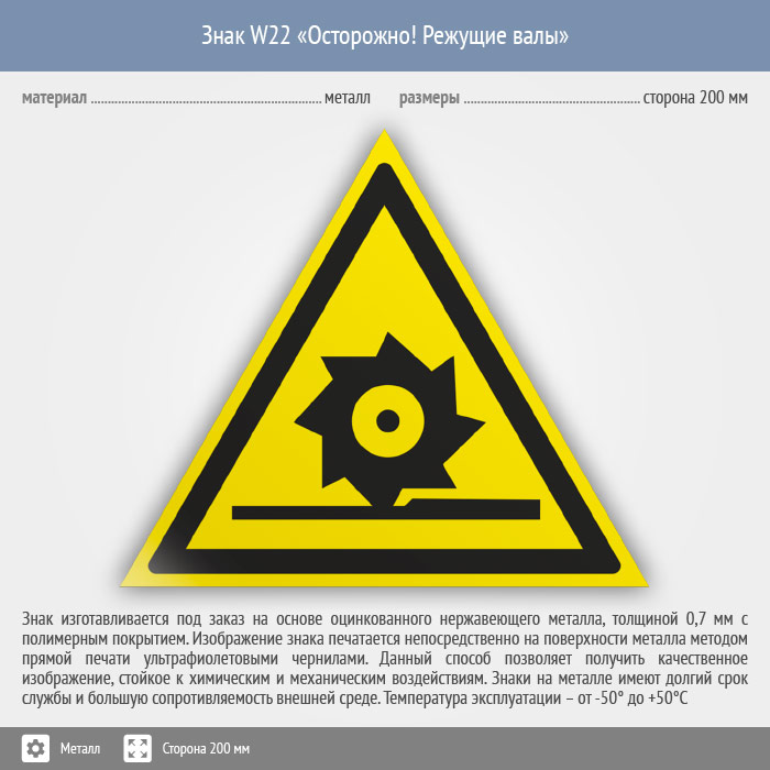 Знак W22 «Осторожно! режущие валы» (металл, сторона 200 мм) в Хотьково купить