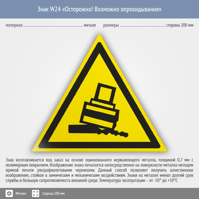 Знак W24 «Осторожно! возможно опрокидывание» (металл, сторона 200 мм) в Хотьково купить