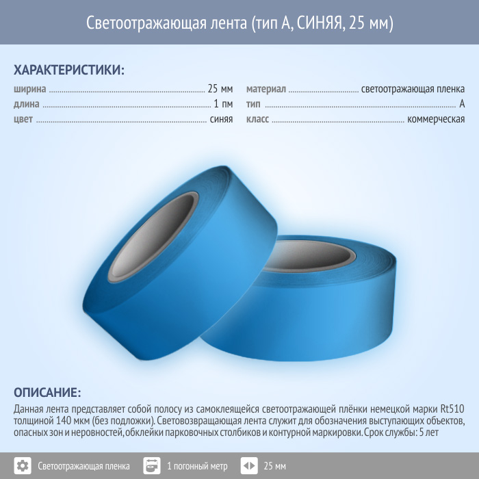 Светоотражающая однородная лента (тип А, СИНЯЯ, 25 мм х 1 п.м.) в Хотьково купить