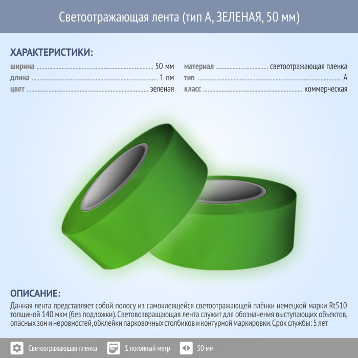 Светоотражающая однородная лента (тип А, ЗЕЛЕНАЯ, 50 мм х 1 п.м.) в Хотьково купить