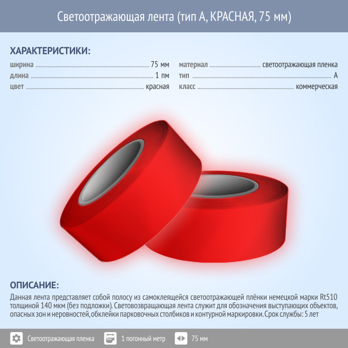Светоотражающая однородная лента (тип А, КРАСНАЯ, 75 мм х 1 п.м.) в Хотьково купить