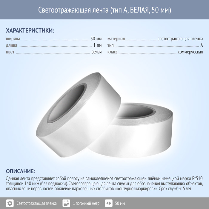 Светоотражающая однородная лента (тип А, БЕЛАЯ, 50 мм х 1 п.м.) в Хотьково купить