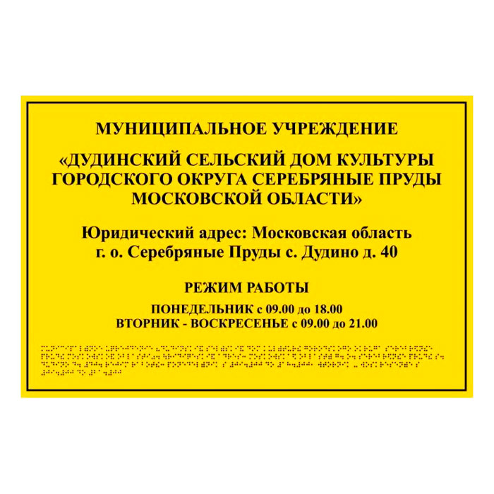 Тактильная вывеска с дублированием азбукой Брайля, ДС11 (полистирол 3 мм, 600х400 мм) в Хотьково купить