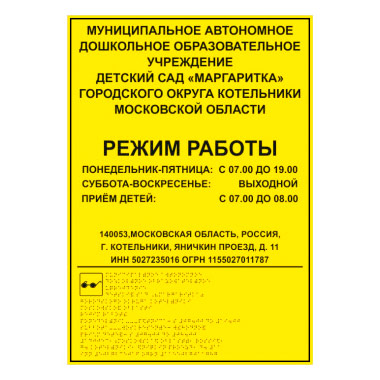 Тактильная вывеска с дублированием азбукой Брайля, ДС8 (полистирол 3 мм, 300х400 мм) в Хотьково купить
