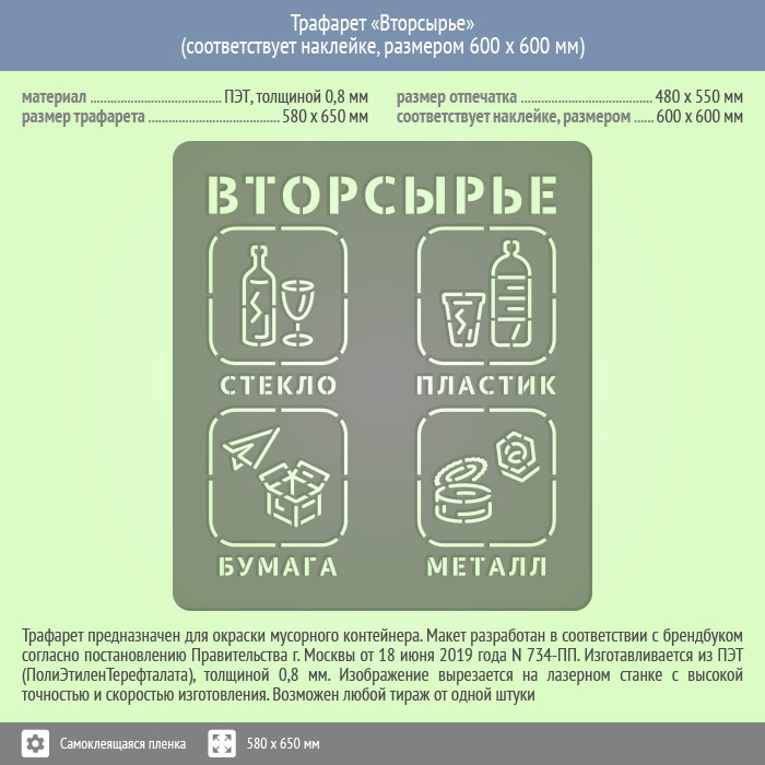 Трафарет «Вторсырье» (соответствует наклейке, размером 600х600 мм) в Хотьково купить
