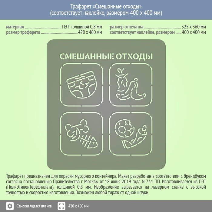 Трафарет «Смешанные отходы» (соответствует наклейке, размером 400х400 мм) в Хотьково купить