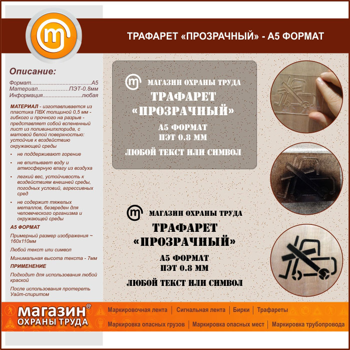 Трафарет «ПРОЗРАЧНЫЙ» (А5 формат, ПЭТ 0,8 мм) в Хотьково купить