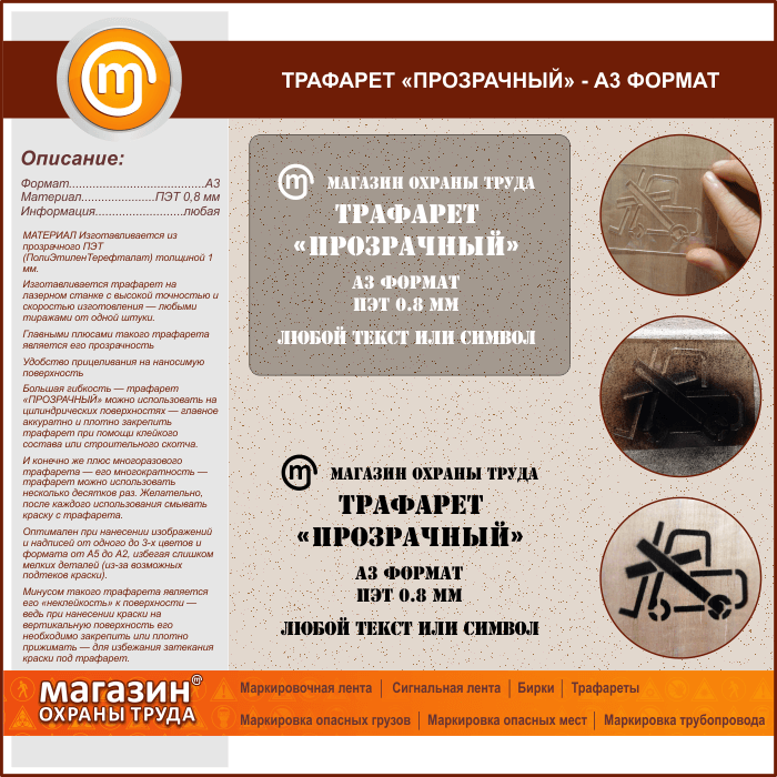 Трафарет «ПРОЗРАЧНЫЙ» (А3 формат, ПЭТ 0,8 мм) в Хотьково купить