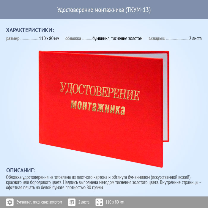 Бланк удостоверения монтажника (ТКУМ-13) в Хотьково купить
