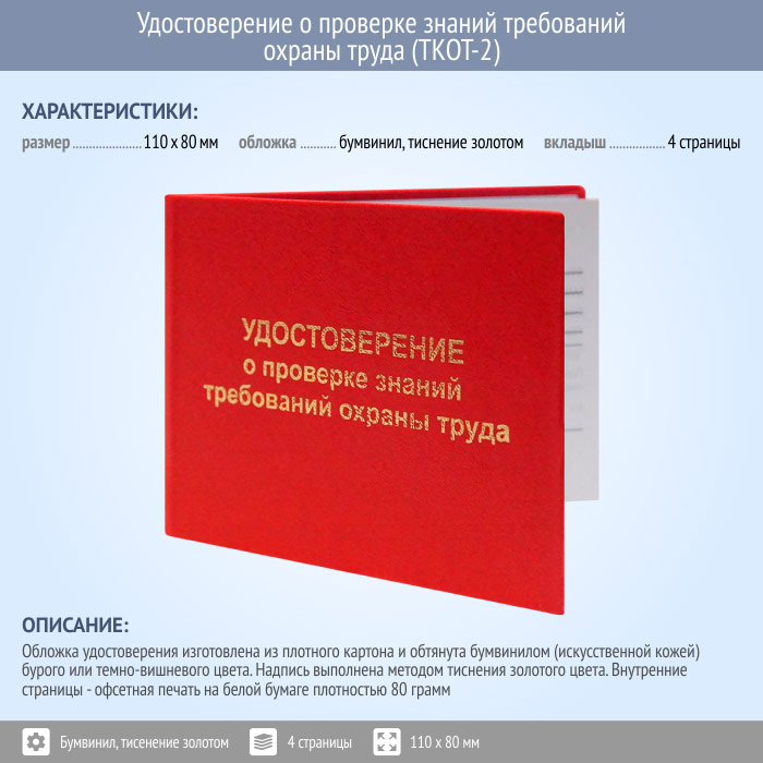 Бланк удостоверения о проверке знаний требований охраны труда (ТКОТ-2) в Хотьково купить