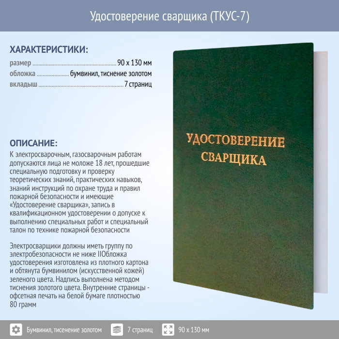 Бланк удостоверения сварщика (ТКУС-7) в Хотьково купить