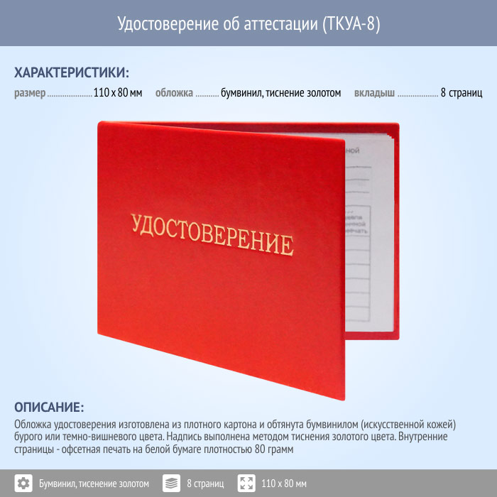 Бланк удостоверения об аттестации (ТКУА-8) в Хотьково купить