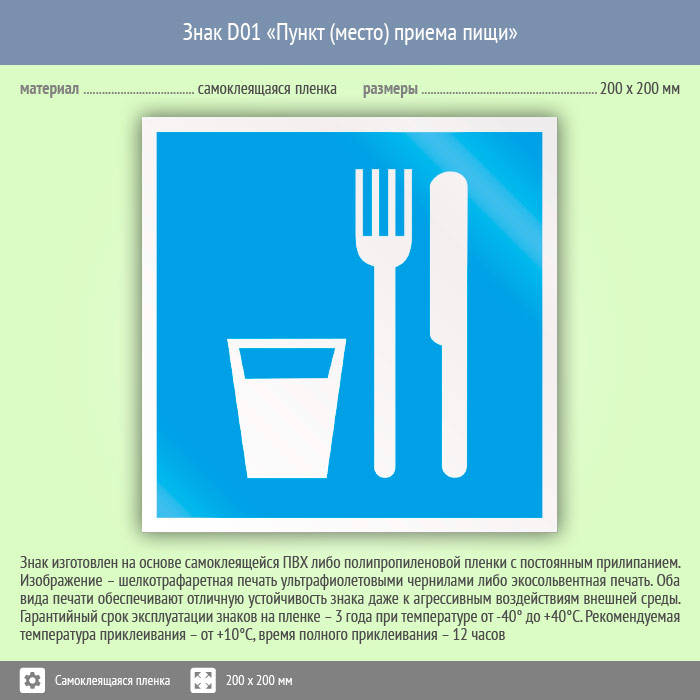 Знак D01 «Пункт (место) приема пищи» (пленка, 200х200 мм) в Хотьково купить