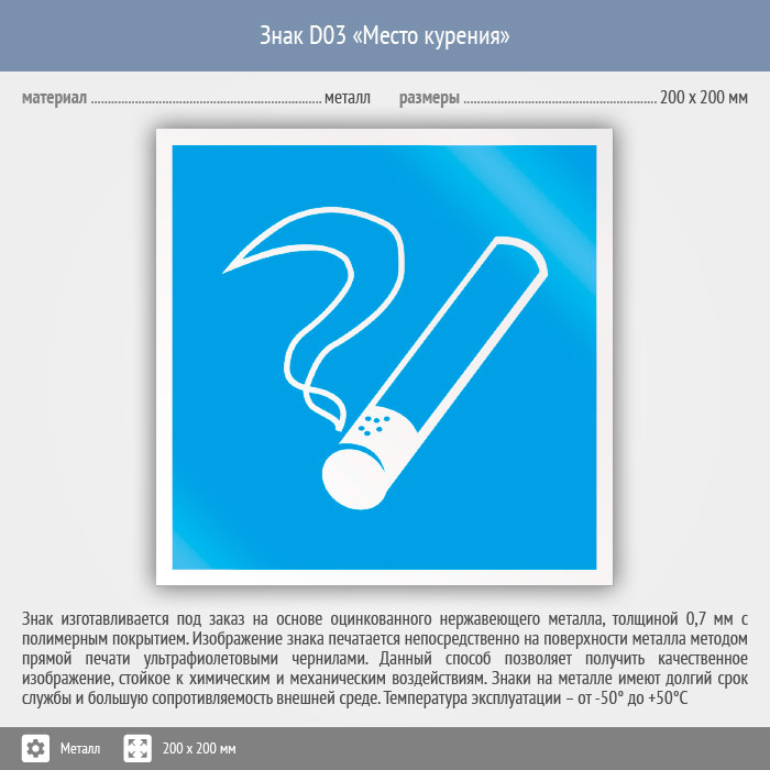 Знак D03 «Место курения» (металл, 200х200 мм) в Хотьково купить