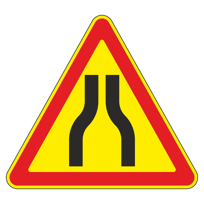 Дорожный знак 1.20.1 «Сужение дороги» (временный) (металл 0,8 мм, III типоразмер: сторона 1200 мм, С/О пленка: тип А инженерная) в Хотьково купить
