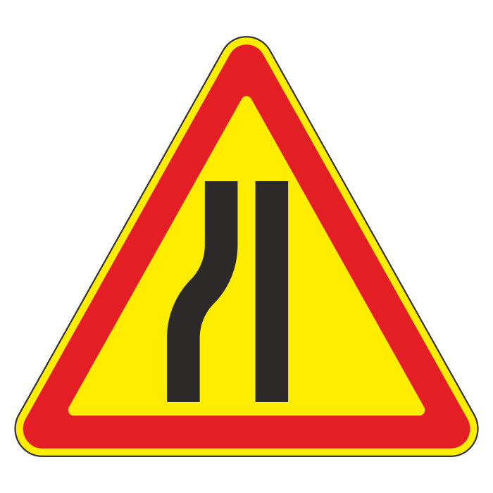 Дорожный знак 1.20.3 «Сужение дороги» (временный) (металл 0,8 мм, III типоразмер: сторона 1200 мм, С/О пленка: тип А коммерческая) в Хотьково купить