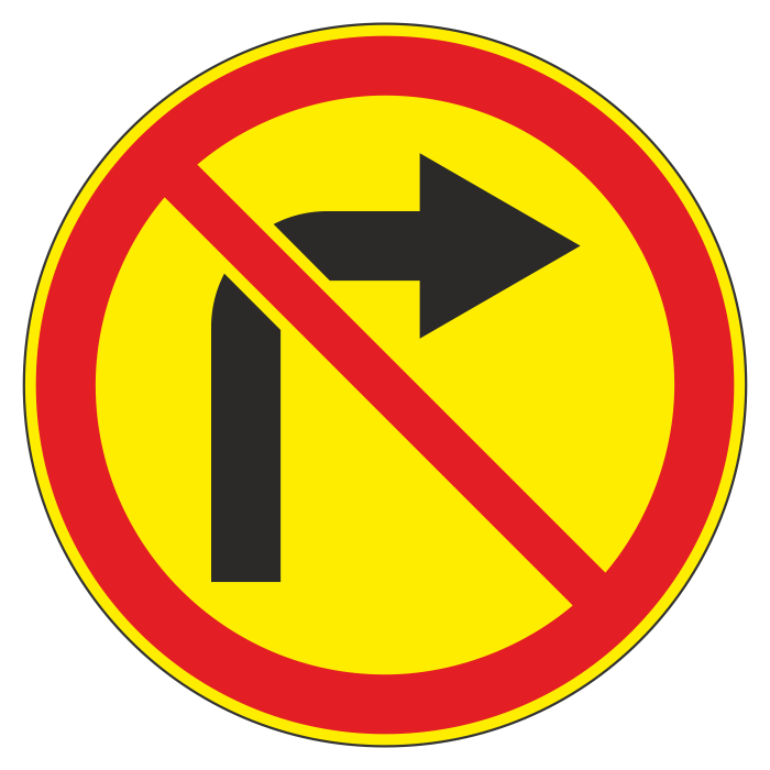 Дорожный знак 3.18.1 «Поворот направо запрещен» (временный) (металл 0,8 мм, I типоразмер: диаметр 600 мм, С/О пленка: тип Б высокоинтенсивная) в Хотьково купить