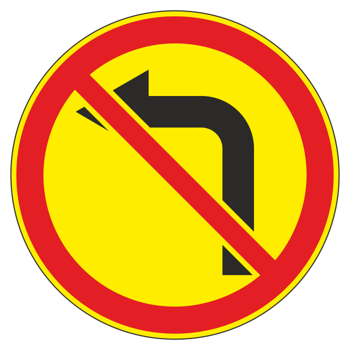 Дорожный знак 3.18.2 «Поворот налево запрещен» (временный) (металл 0,8 мм, I типоразмер: диаметр 600 мм, С/О пленка: тип В алмазная) в Хотьково купить