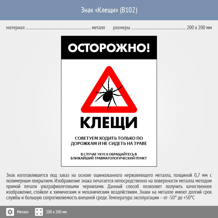Знак «Осторожно! Клещи», B102 (металл, 400х600 мм) в Хотьково купить