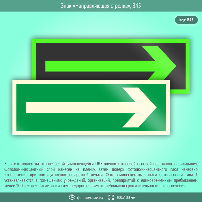 Знак «Направляющая стрелка», B45 (фотолюминесцентная пленка, 300х100 мм) в Хотьково купить